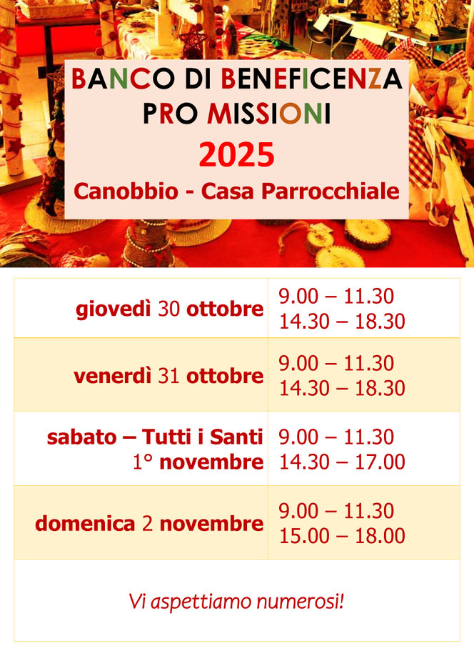 I particolari all’albo parrocchiale e sul nostro sito internet.